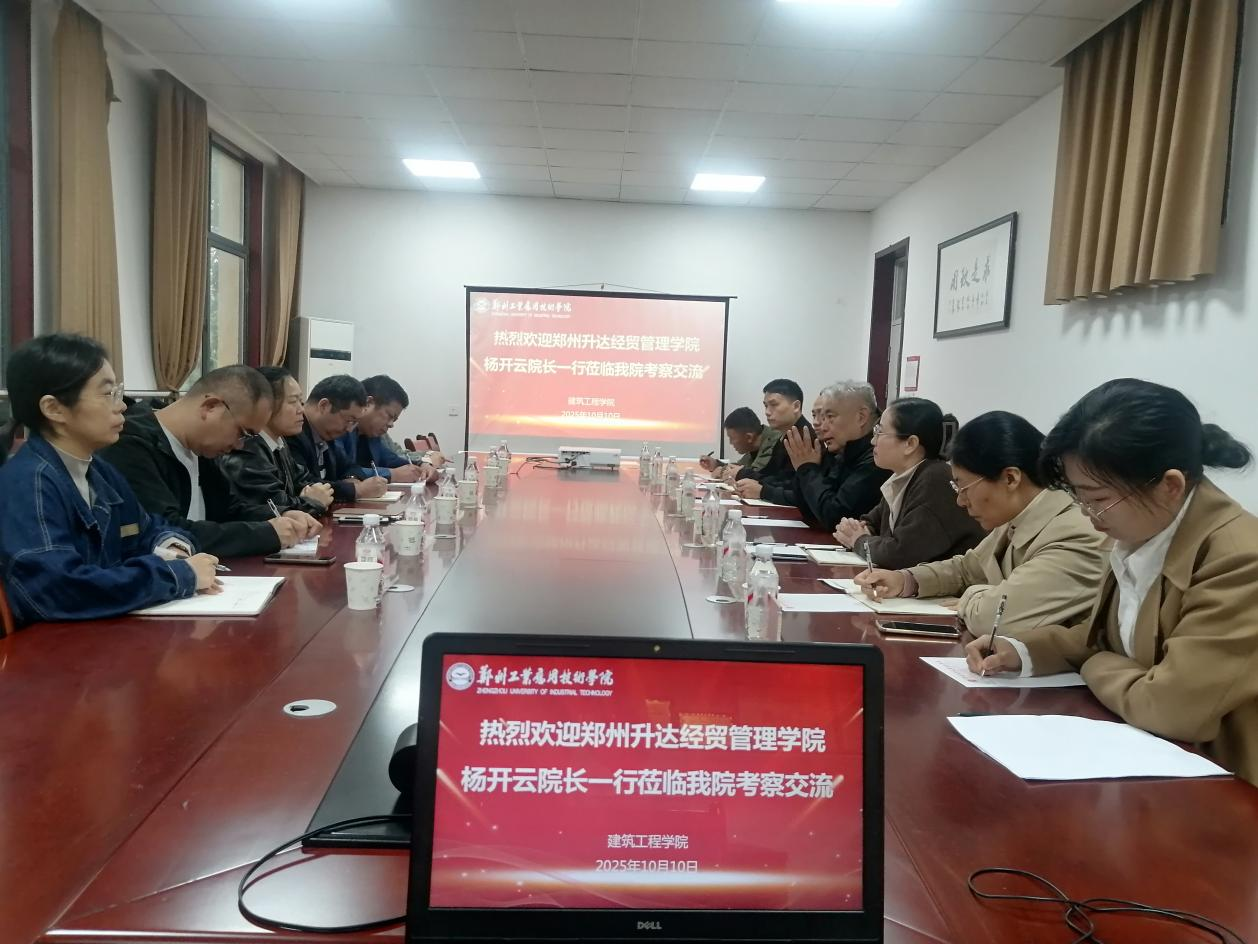 2025年10月10日上午,建筑工程学院院长杨开云、副院长高燕带领多位教研室主任及教师前往郑州工业应用技术学院建筑工程学院进行参观访问。郑州工业应用技术学院建筑工程学院院长谢晓杰、副院长靳晓亮等热情接待了我院团队。双方首先就2025版人才培养方案的制定展开深入探讨,围绕专业课程设置、实践教学安排以及如何更好地对接行业需求等方面分享了各自的经验和见解,为优化人才培养模式提供了新的思路。
