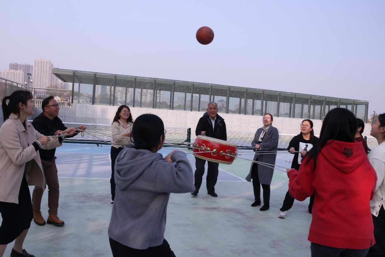 本次趣味运动会于下午14:30准时开始。活动现场,平日严谨治学的教授、辛勤耕耘的老师们暂时放下了手头的工作,化身为活力四射的“运动员”。运动会精心设置了 “同心鼓”、 “十人九足” 、“无敌风火轮”和“超音速”四个集趣味性、协作性和竞争性于一体的比赛项目。
