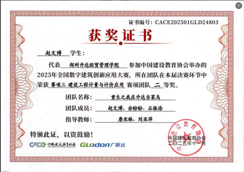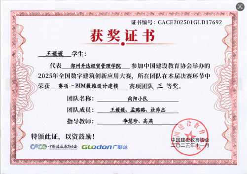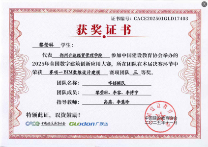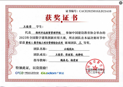 本次大赛共设置了“BIM数维设计建模、数字施工项目管理、建设工程计量与计价”三个赛项,旨在促进建筑行业信息化、工业化及数字化人才培养,重点培养学生专业知识的综合应用及实践能力。当前是推进建筑业全面转型升级的关键时期,也是数字建筑发展的重大机遇期。为在新形势下紧跟行业技术革新步伐、培育创新型技术人才,在校领导及院领导大力支持下,我院师生积极报名参与本次大赛,自2025年6月9日始至2025年10月18日历时四个多月,指导教师带领学生采用定期指导与不定期指导相结合的方式,每周开展专题指导,通过教师精准引导、学生协作研讨的方式,围绕核心赛项反复打磨,通过参赛师生的辛勤付出和不懈努力,不负众望,荣获佳绩。