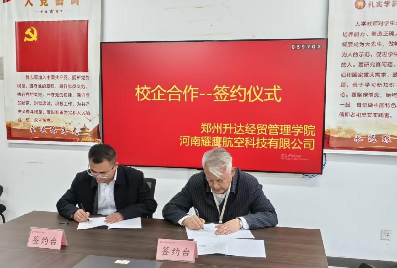 郑州升达经贸管理学院与河南耀鹰航空科技有限公司签订校企合作协议,共绘“无人机+建筑”产教融合新蓝图