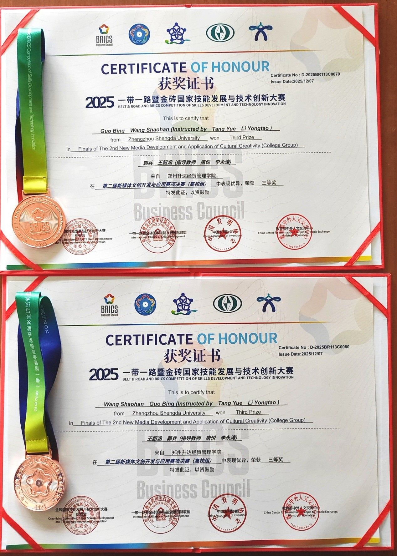 建筑工程学院代表队在2025“一带一路”暨金砖大赛之第二届新媒体文创开发与应用赛项全国总决赛中荣获佳绩