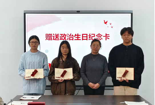 会议伊始,党支部书记王洋洋和组织委员李新为近期过政治生日的党员送上纪念卡,强化党员身份认同。