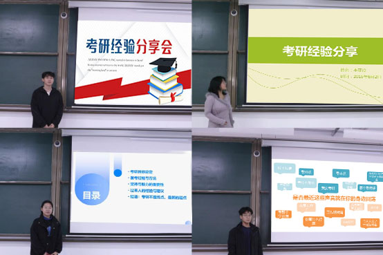 随后,朱志远、聂真光则结合个人备考经历,从考研形势分析、复习方法、资料选择和时间管理等方面进行了经验分享,并耐心解答了同学们关心的问题。此次活动有效增强了学生备考信心,帮助大家更加清晰地认识考研全过程,营造了积极向上的备考氛围。
