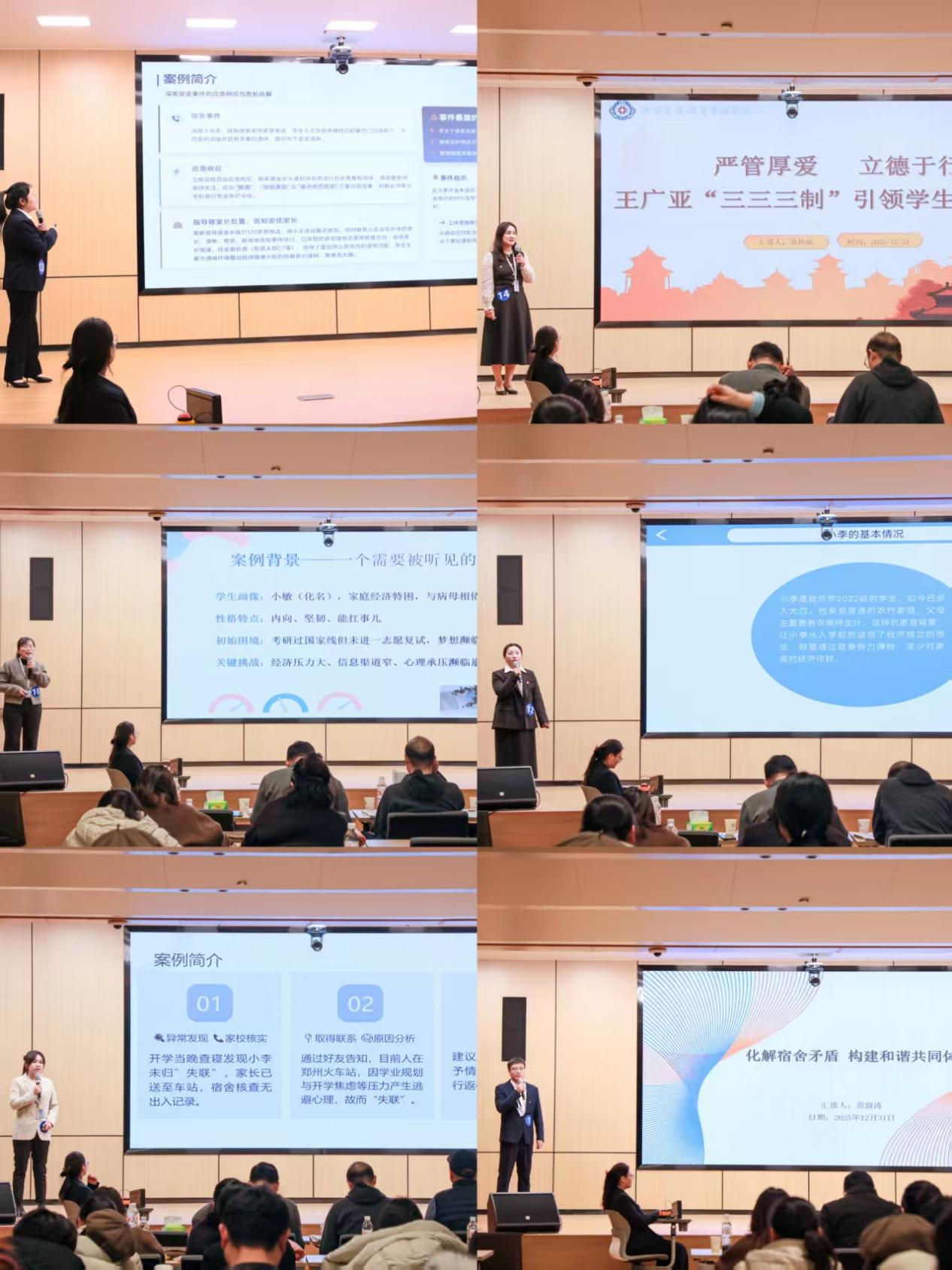 参赛辅导员们围绕思想价值引领、学业困难帮扶、心理健康教育、职业生涯规划、危机事件应对、网络思想政治教育、班风学风建设等学生工作中的重点、难点问题,结合自身工作实际,通过生动的语言、详实的资料、深刻的剖析,展示了他们在处理复杂个案、探索育人规律、创新工作方法过程中的思考、实践与成效。一个个真实鲜活的案例,充分体现了我校辅导员深厚的育人情怀、扎实的职业素养和勇于探索的创新精神。