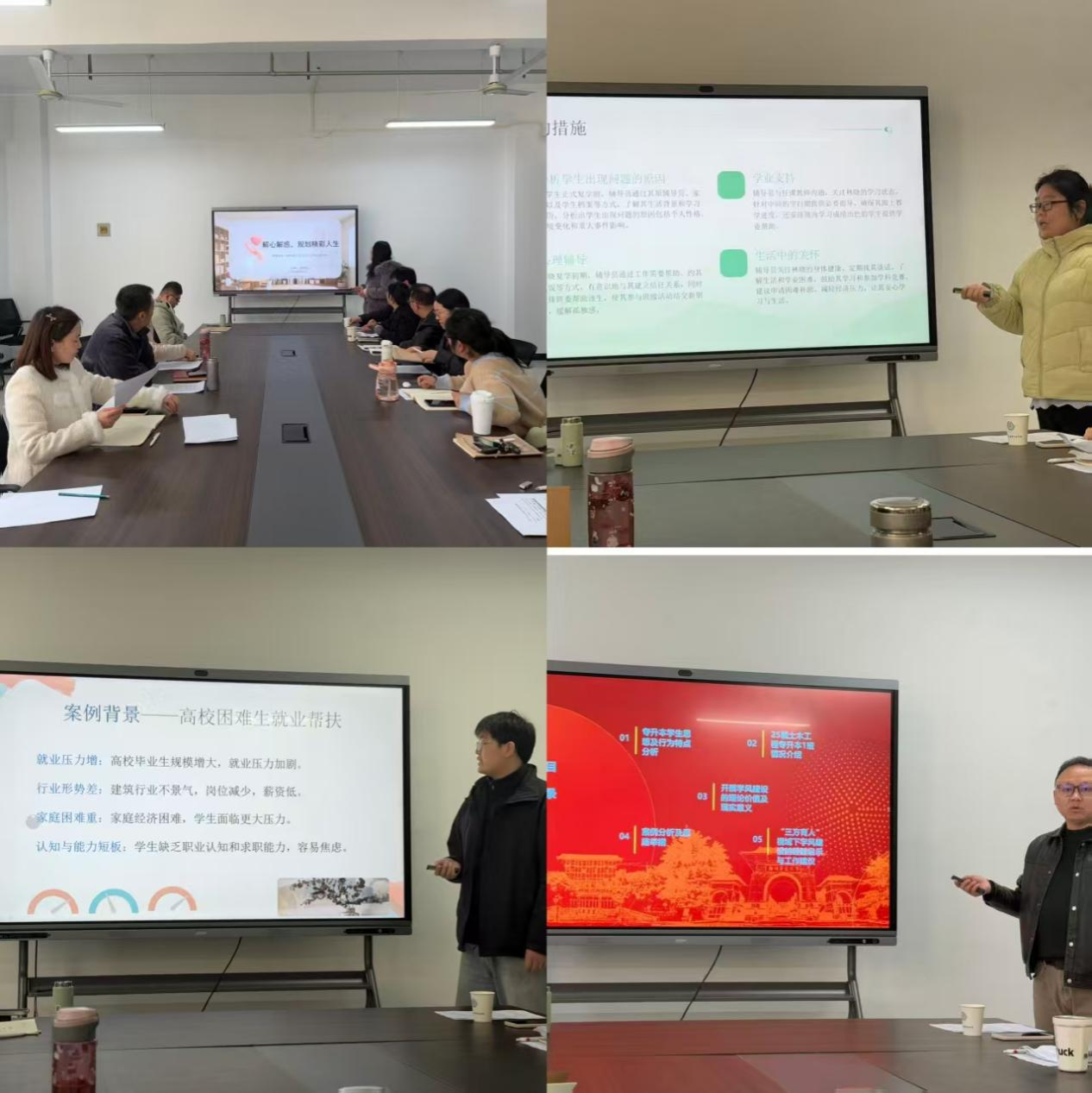 为深入学习贯彻高校思想政治教育工作会议精神,提升辅导员队伍专业素养和育人能力,1月11日,建筑工程学院第一届辅导员案例展示大赛在万林大楼424会议室成功举办。学院党委书记李松涛、党委副书记支园园,全体辅导员参与本次活动。