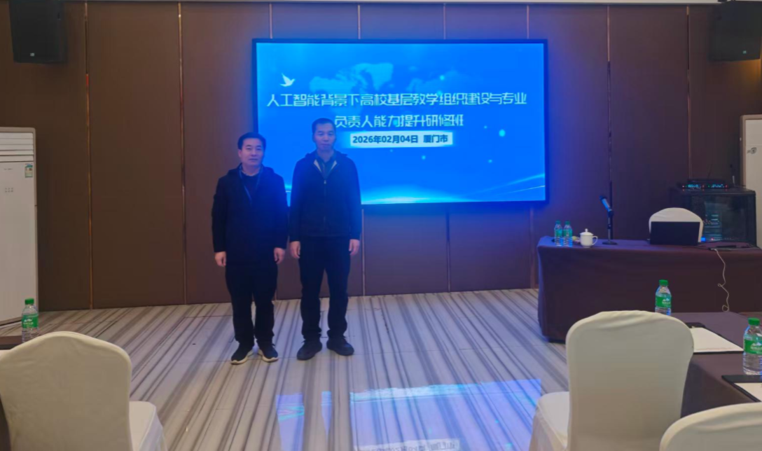 为深入贯彻落实《教育部高等教育司关于开展虚拟教研室试点建设工作的通知》精神,应对新时代基层教学组织(教研室)建设面临的新挑战,2026年2月4日,由中教国培创联教育咨询中心主办、北京树川教育咨询有限公司协办的"人工智能背景下高校基层教学组织建设与专业负责人能力提升研修班"在福建省厦门市金瑞佳泰酒店一楼报告大厅正式开班。我校建筑工程学院魏春龙、庞伟旺两位教师与来自厦门大学、福建师范大学、华侨大学、集美大学等4所高校的专家学者及专业带头人齐聚一堂,共同探索新时期高校基层教学组织创新路径。