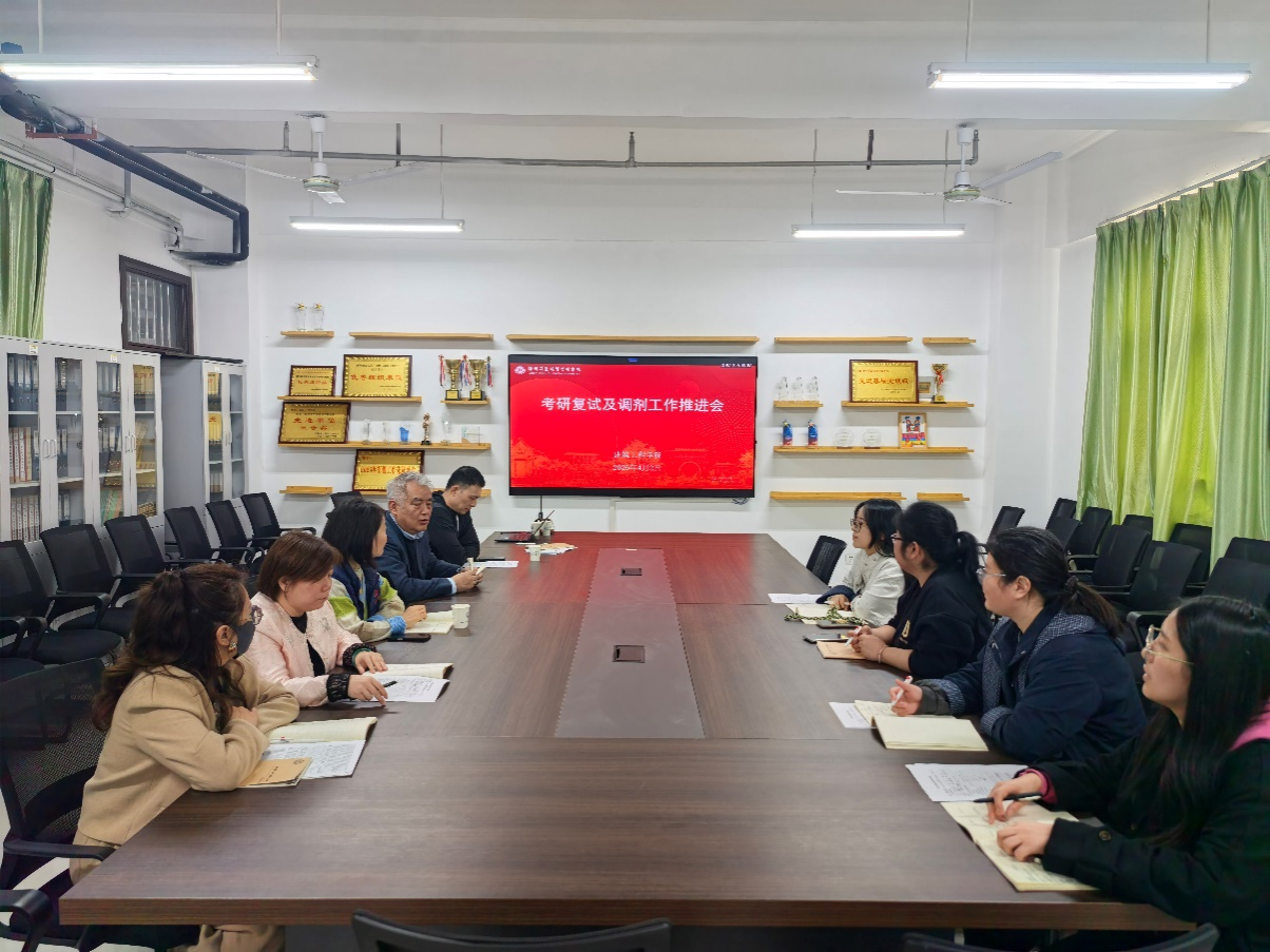 随后,全体毕业班辅导员逐一汇报了所带班级考研学子的具体情况,包括学生复试准备进度、调剂意向、存在的困难等内容,与会人员共同研讨帮扶方案,明确后续工作分工与时间节点。大家纷纷表示,将全力落实会议部署,紧盯复试与调剂关键阶段,主动跟进、精准服务,确保每一位有升学意愿的学子都能得到及时有效的指导。
