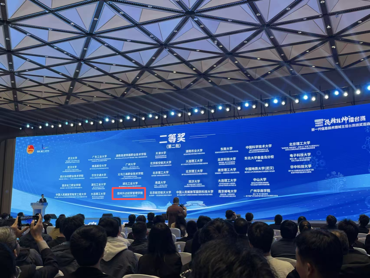 2025年10月27日,全国“挑战杯”大学生课外学术科技作品竞赛“揭榜挂帅”专项赛“新一代信息技术领域”主擂台赛在重庆举行,我院由余盼盼、解文柯、王韶涵、陈明聪、王俊莹、师航天组成的学生团队,在王秉秉、李永涛、任小营三位老师的指导下,凭借扎实过硬的专业功底、敢为人先的创新思维与默契高效的团队协作,从全国众多参赛队伍中崭露头角、脱颖而出,成功斩获国家级二等奖。实现了我院该类型国家级奖项的零的突破,是我校在“大挑”专项赛道目前的最高奖项,我校“挑战杯”系列赛事再增1项国赛奖项。
